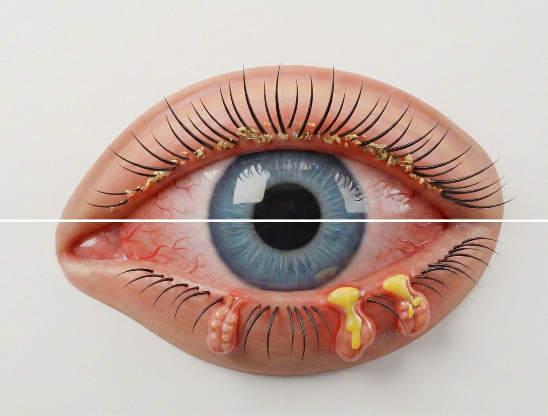 Lorsque ces glandes fonctionnent mal ou que des bactéries s'y accumulent de manière excessive, l'équilibre est rompu. La paupière s'enflamme, rougit, et finit par produire de petites croûtes inconfortables.
